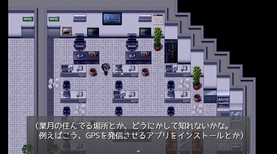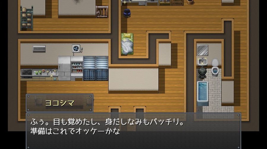自宅に戻った後は冷蔵庫を調べ、空なことに気づき、コンビニへと向かいます。”惣菜パン”を買ったら自宅に戻り、右上にあるパソコンを調べます。