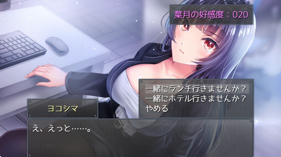 他に仕事終わりに、葉月と一緒に帰らないを選ぶと、エロ展開がありました。葉月は社内に残っていて、いるのは左下の会議室です。