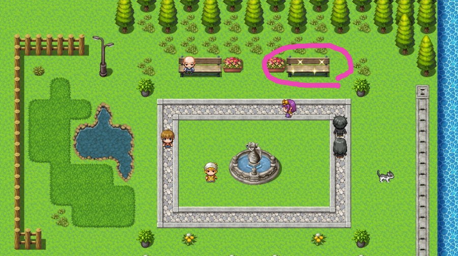 ベンチが複数ありますが、右寄り(光っている箇所)が正解です。