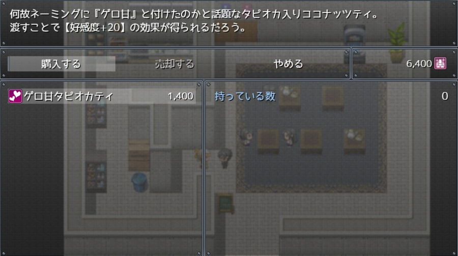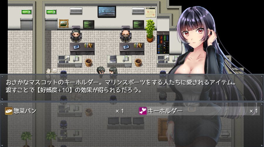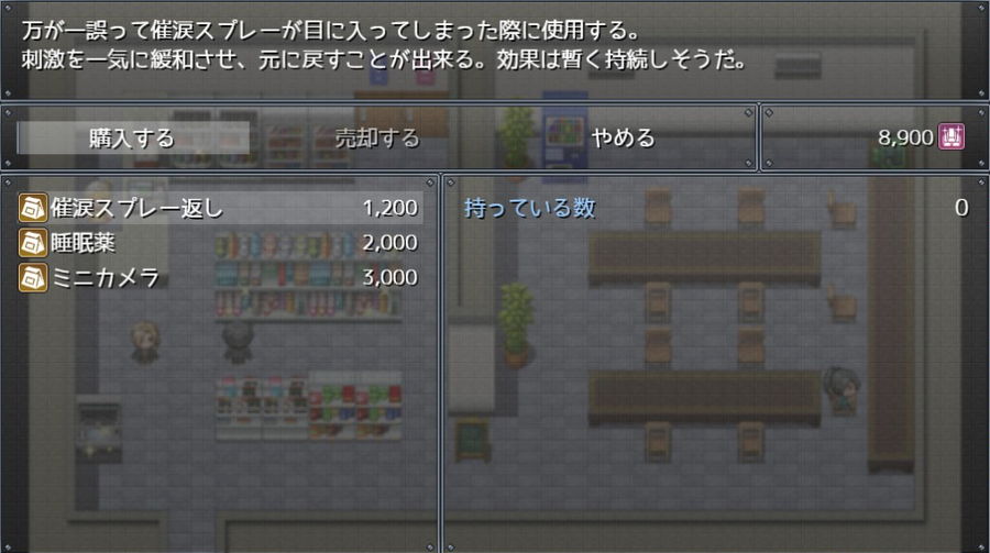 コンビニでは防犯グッズなどを買うことができ、イベントの前提になっていたり、先輩に渡すことで好感度が上下したりしました(なお体験版で買う必要があるのは、睡眠薬・ミニカメラ・キーホルダー)。