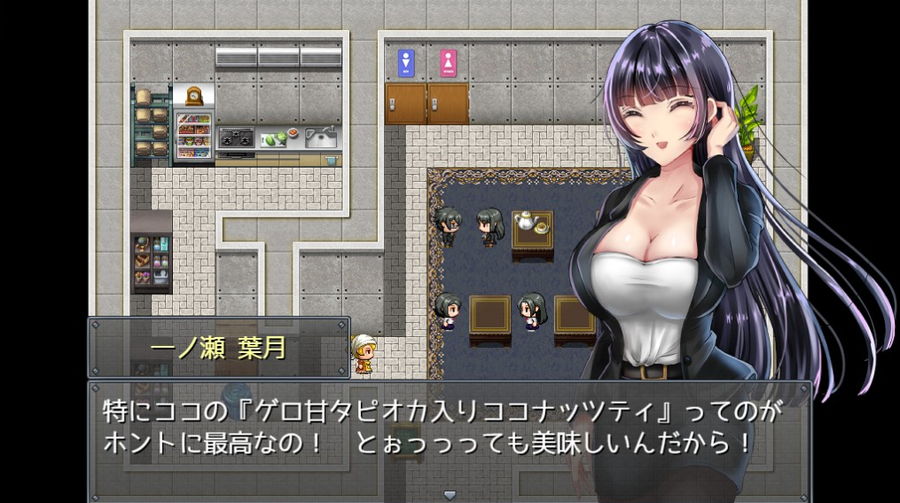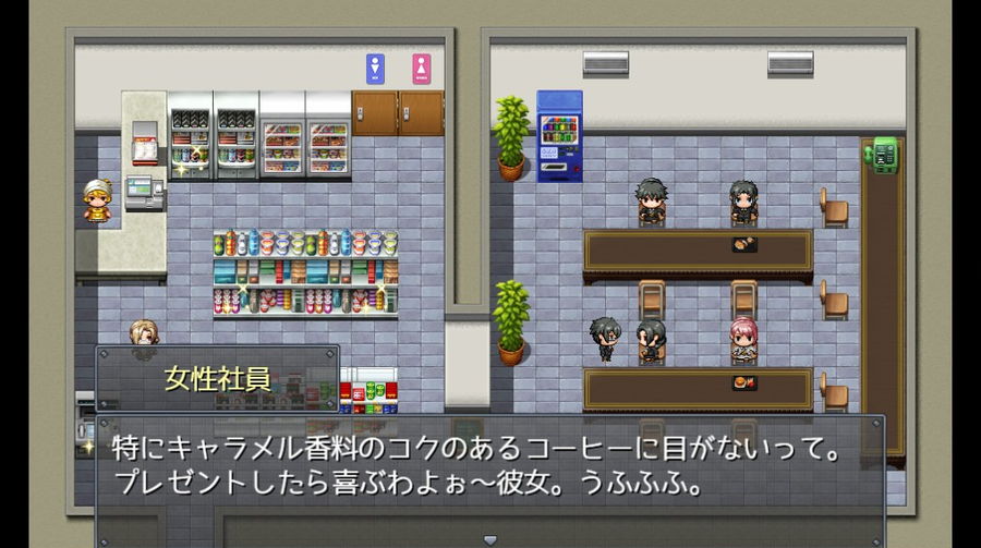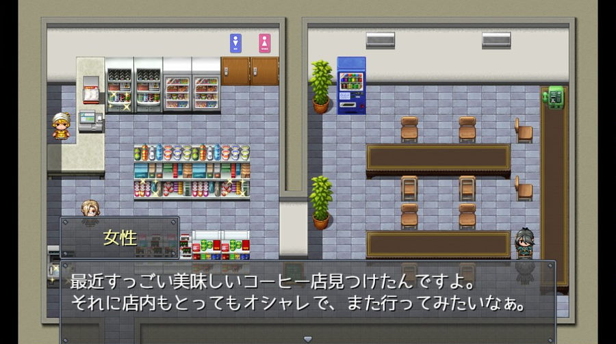 他にコンビニ内右下の女に話しかけると、カフェ情報を入手し、”オシャレなカフェ”に行けるようになります。