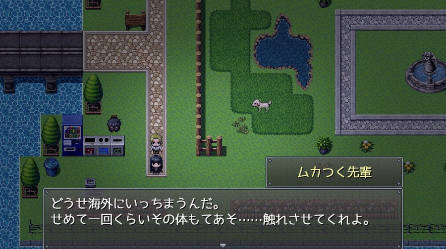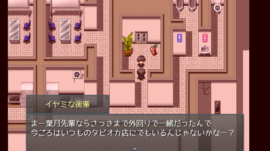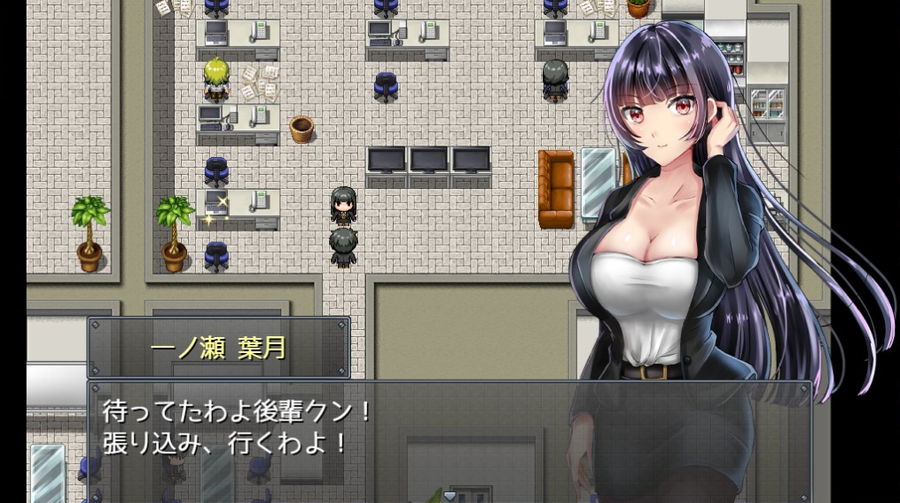 7/30の予告新作で、3日後に海外赴任してしまう先輩を自分のものにするべく奔走していく話です(RPGツクールMV製)。体験版は先輩の突然の海外赴任話を知るところから始まり、先輩の好感度を上げたり痴漢したり、色々情報を集めたりして3日目が終わるあたりまで(=情報収集パートほぼ全部)をプレイできました(エロシーンは失敗バッドエンドで無理矢理レイプ、電車内痴漢、眠っているところを脱がせてパンツ強奪、後輩を睡眠姦など)。本編は2020年09月下旬発売予定です。
