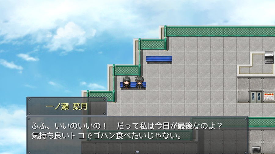 3日目、食事に誘うとお弁当を作ってくれてきていました。2人で屋上へと向かいます。選択肢は”好きな男性像”で好感度+10、不安→僕が守って見せますで好感度+10です。