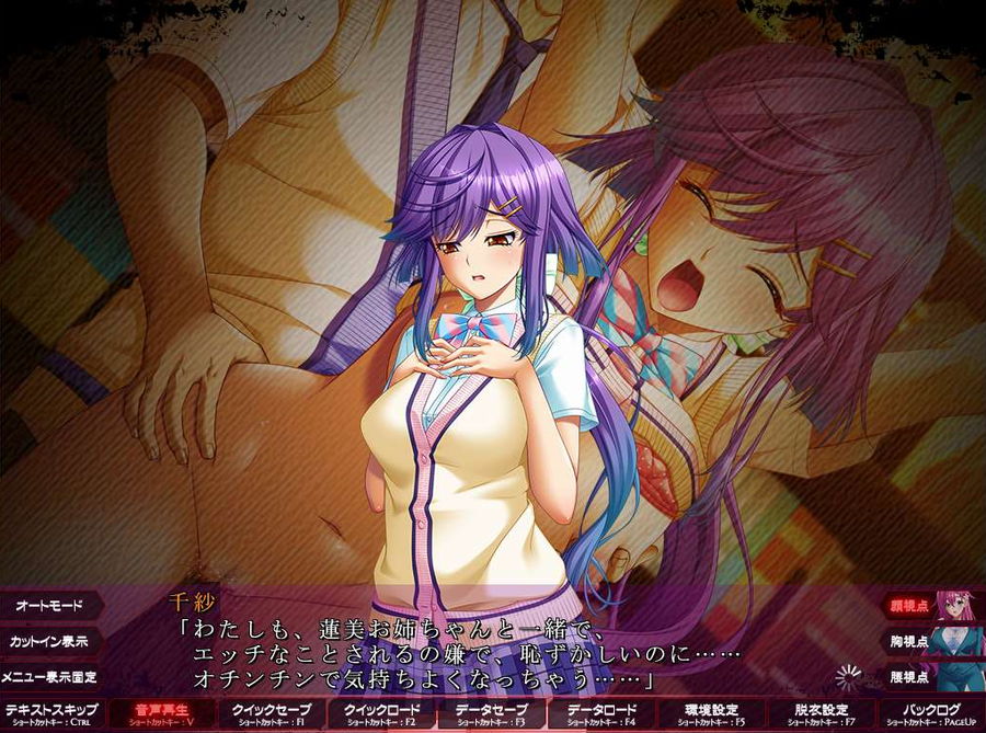 保健室へ様子を見に行くと、女生徒(羽田 千紗)が登場し、保険医の従姉妹とのことです。狡猾な主人公は、こちらの女子のことも保険医への脅しのネタに使いました(芳野先生レイプ作戦の見張りを命じる)。
