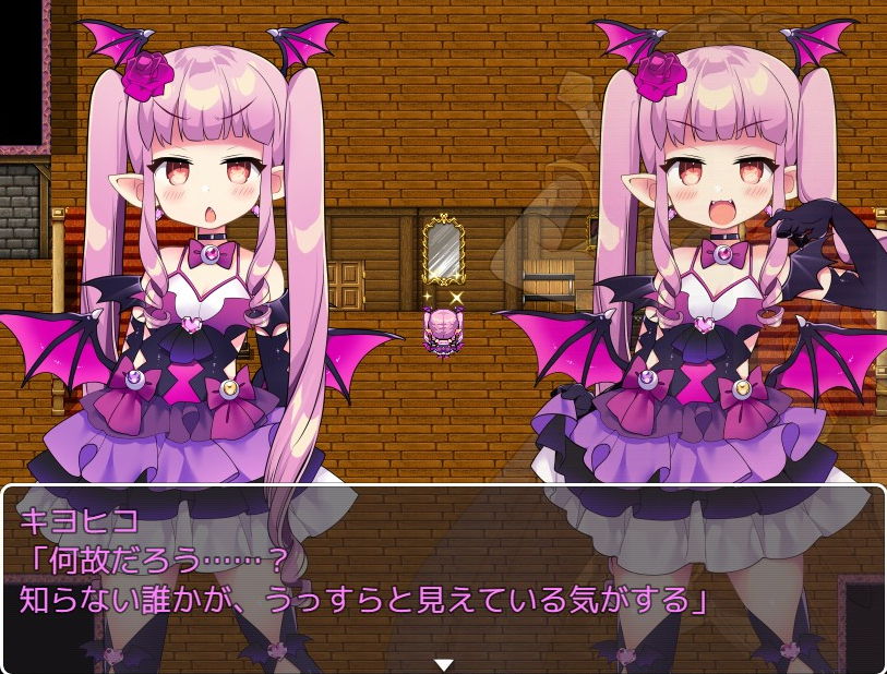 上へ進むとピンク髪の少女(吸血姫)が話しかけてきました。主人公は攻撃をかわして攻撃に移り、銀の杭で勝利を確信するものの、ランクの高い吸血鬼であるこの女には効果なしでした。拘束魔法で動きを封じられてしまい、首を噛まれて血を吸われていきます。
