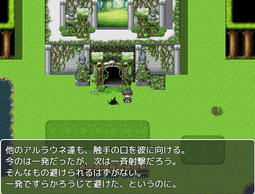 なお街の教会にたどり着けばなんとかなるはず的なセリフが出ますしたが、一度アルラウネ化が始まってしまうと、仮に頑張って出口までたどり着いても森を出ることはできませんでした(強制的に戻されてしまい森から出ることができない)。