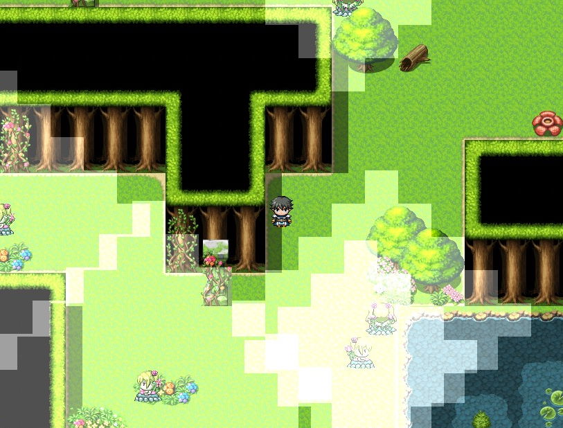 このあとはアルラウネに捕まらないようにして出口を目指す、いわゆる避けゲーをすることになりました。敵の認識範囲(もしこの範囲に入ってしまうと敵が駆け寄ってくる)がはっきり示されるのはわかりやすくてありがたかったです。