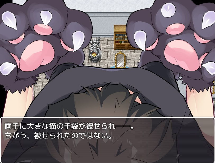 店長は合成の魔術を掛けてきました。主人公の姿が次第に変化し、耳が生え、猫化していきます。