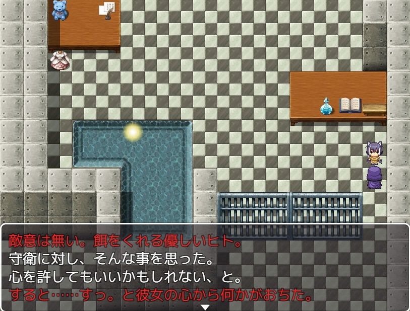 ロードしてやり直し、脱出に失敗した場合のエンドを回収しておきます。必要なアイテムを入手せずに時間を進めればよく、埋めるのは簡単です。計3回失敗すると場面が変わって屋外の牢で、優しい女に買われていくエンドでした。
