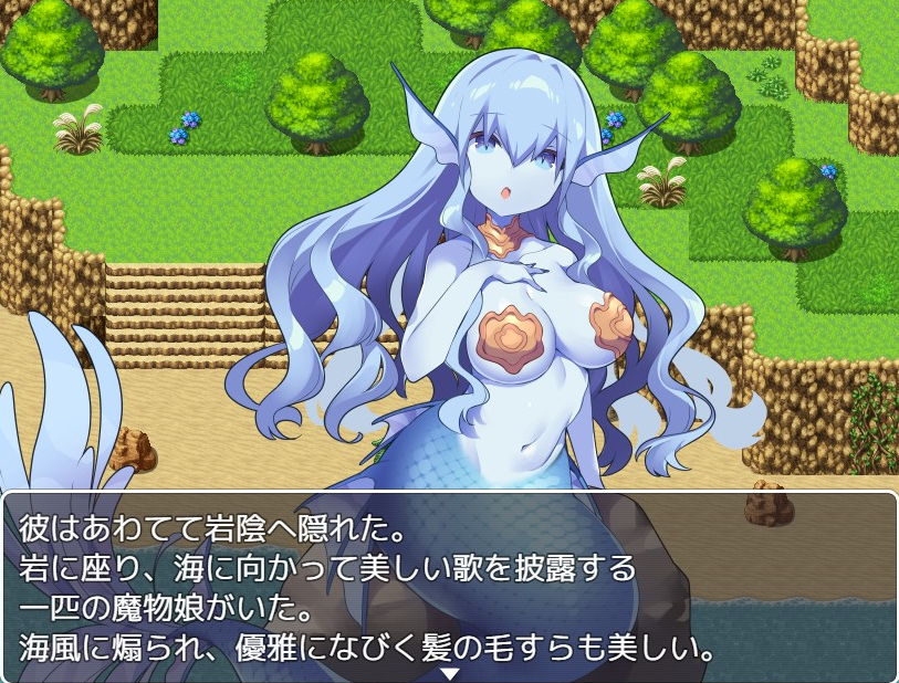 11/8の予告新作で、お宝を手に入れるべく島へとやってきた男冒険者が色々なパターンで魔物娘化しまうというマルチエンドな作品です(RPGツクールMV製)。体験版では体入れ替わり・吸血姫化・人魚化・猫耳娘化などのエンドが見られました。本編は2021年11月23日発売予定です。