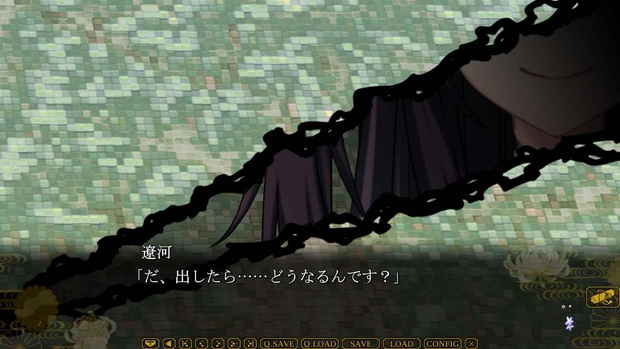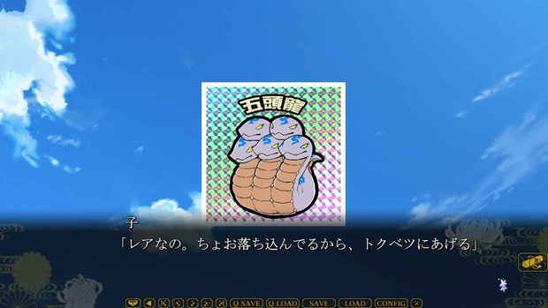 琉々葉の封印を解くか否かの選択肢が出まして、ここはゲームオーバーありなので事前にセーブです。封印を解くを選ぶと、翌日主人公1人で現地に向かってしまい、あっさり食われてゲームオーバーでした。シール”鹽乾珠”(しおひるたま)を入手で、だいぶシールが集まってきました。