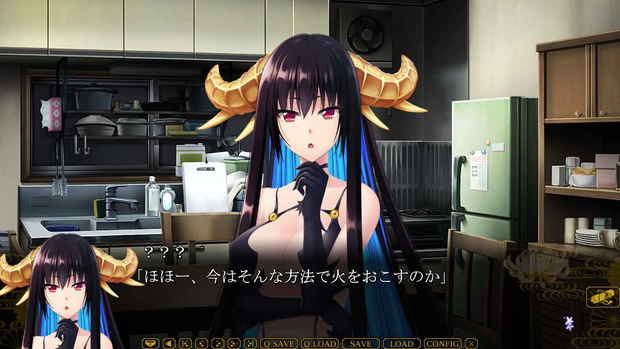 見かねた主人公が食事を作りだすと、ガスで湯を沸かすのを見て驚いた様子です。何食か平らげるものの、まだまだ空腹らしく、主人公のことを食べようとしてきました。