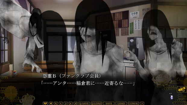 店長は怪訝そうな顔をし、いつもと同じく客はいませんでした(並んでいるように見えたのは霊と思われる)。霊能力を得たことで、今まで気づいていなかった悪霊が見えるようになり、店が悪霊の住み処と化していることに気づきます。戦って追い出そうとするものの、主人公にはまるで戦闘能力がなく、あざ笑われて終わりました。なお選択肢で”和香様、信じてますから!”を選ぶと、シール”道半之大神(ちがえしのおおかみ)”が手に入ります。