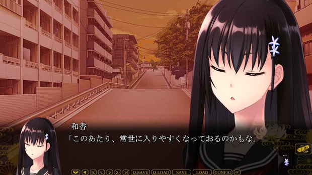 この和香様というのが本作のヒロインです。まとめると、怪異・怨霊との戦いに主人公が巻き込まれているという状況です(主人公は戦闘のサポート的な役どころ)。敵を撃退して落ち着いたところで、どうしてこうなったのかの回想開始です。