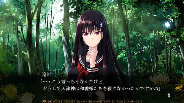 ここで女が神を名乗り、属性的には水の神ということで、この神社とそういった意味でもつながりがありました。女は”アマツ”との戦いの末、酒を飲んで酔ったところを襲われて封じられたとのことです。ここで女の妹=ルルハ(琉々葉)なことを主人公も理解し、この”琉々葉”を探しだすのがとりあえずの目的になります。