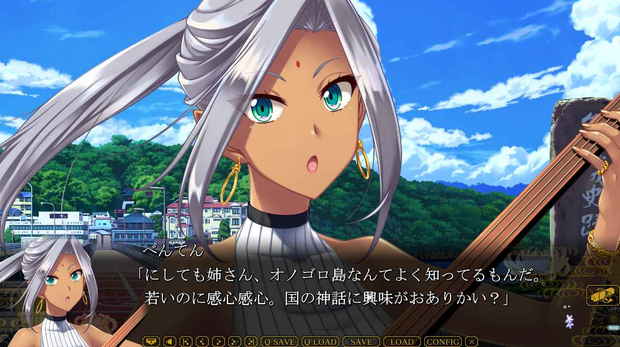 選択肢は、1000円を選ぶと、シール”べんてん”を入手です。終演後、神様な和香様的は”島の始まり淡路島”というところが納得いかず、難癖を付けます。和香様としては、おのごろ島が最初の島であるという認識です(なお調べてみると、オノゴロ島がどこを指しているかについては諸説あるものの、女の言うとおり淡路島[沼島]説が主流でした)。女は若い学生がオノゴロ島を知っていることに驚き感心してくれます。この女の素性は気になるところでした(ただの一般人なのか、霊能力者関係なのか、それとも神様なのか)。